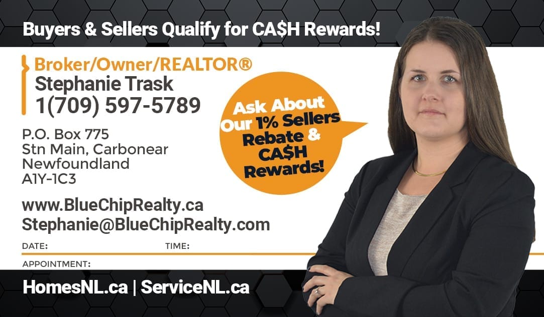 If the book and free chat help you sell your property, consider having me represent you as your REALTOR® if you buy a property in Newfoundland from St. John's to Carbonear or the surrounding areas through Blue Chip Realty, NL - get a CA$H reward. Sell with Blue Chip Realty (full-service) and learn how you can double qualify for our 1% rebate (reduction) and get a CA$H reward.